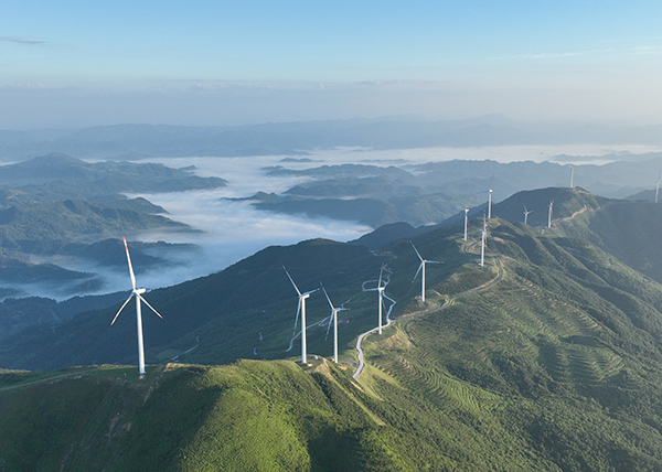 2025年7月15日,拍攝的銅仁市石阡縣石固鄉大頂山風電場(無人機照片)。申逸愷 攝