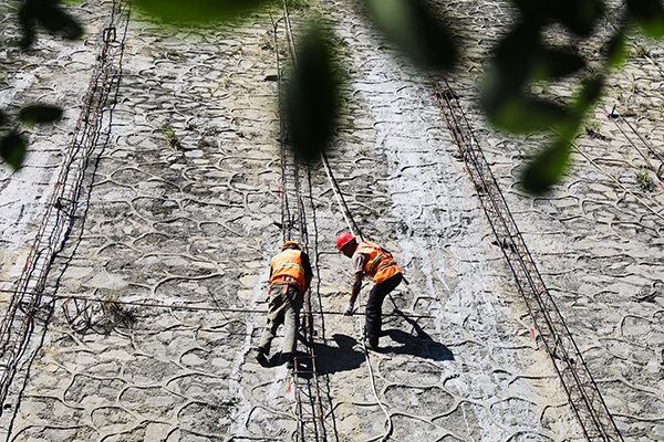 國道352線邊坡地質災害防治工程現場。(楊子依 攝)