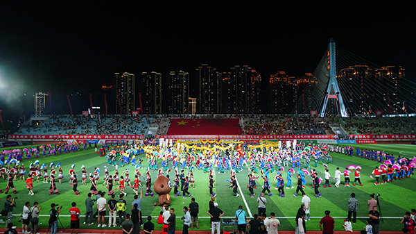 “非遺傳承生生不息,民族瑰寶熠熠生輝!”在非遺技藝盛宴環節,思南文化瑰寶輪番亮相:省級非遺魁榜醒獅騰躍靈動,160餘年的傳承盡顯力量之美;市級非遺舞龍蜿蜒起伏,隨鼓點舞動出傳統文化的磅礡生命力;省級非遺思南花燭、斗笠、花甜粑、僰牌、土家族剪紙,以及市級非遺土家族背帶等項目集中展演,傳承人現場展示精湛技藝,讓觀眾沉浸式觸摸非遺傳承的溫度與魅力,苗族青年歌手阿萵窕現場演唱歌曲《山水貴客》和《乾一杯》,悠揚的歌聲與賽場星空交相輝映,將現場氛圍推向小高潮。