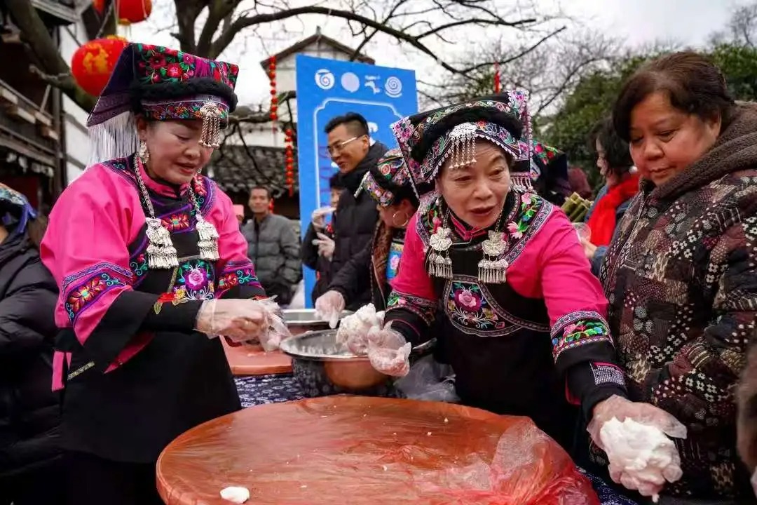 午後兩點,“龍井味道”美食街飄來糍粑的香氣。攤主黃萍一邊直播製作過程,一邊教網友唱布依山歌。她的抖音賬號已有上萬粉絲,最火的視頻點讚超2萬。