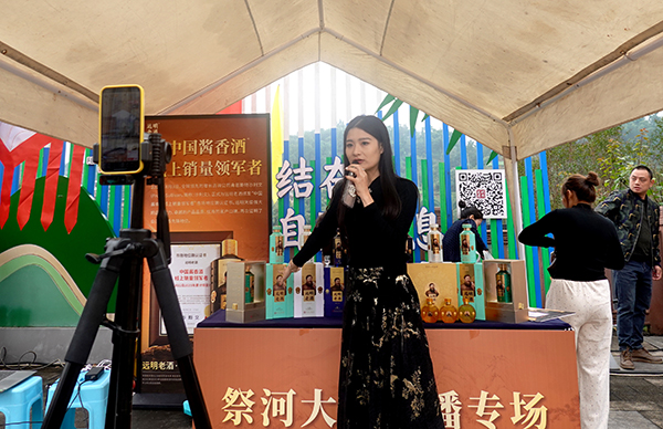 典禮的肅穆尚未走遠,廣場上還有一種創新的醬香節奏。人聲、酒香、笑意,在“微醺酒攤”間流轉成另一種溫度。遠明酒業直播間裏的互動已衝破屏幕;君&厚醬酒業展示産品;百年赤水酒業推出的小瓶裝掃碼關注推廣;赤水醬香酒的直播和系列産品受歡迎……