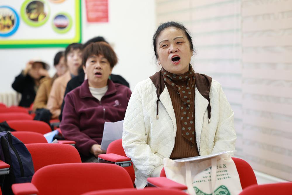 10月28日,在貴州省貴陽市觀山湖區世紀城街道觀山小區,老年人在老年大學內學習唱歌。