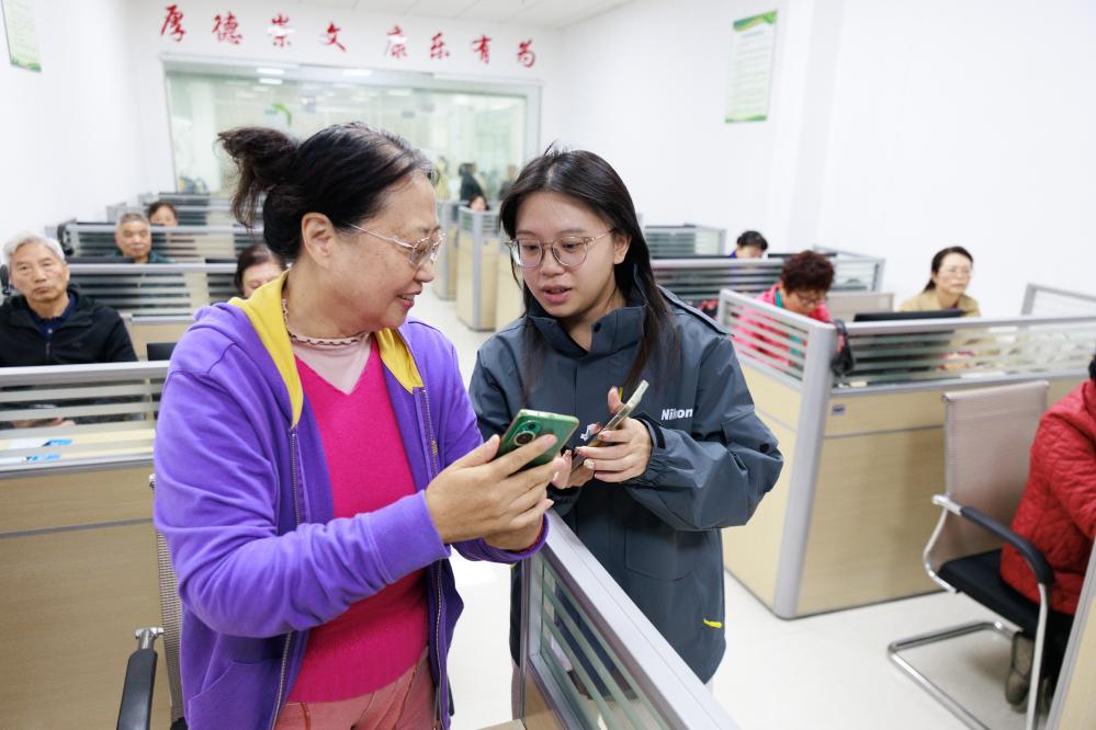 10月28日,在貴州省貴陽市觀山湖區世紀城街道觀山小區,老年人在老年大學內學習手機視頻拍攝技巧。