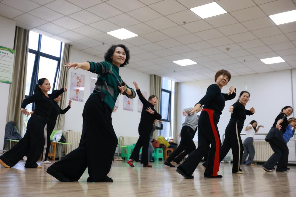 10月28日,在貴州省貴陽市觀山湖區世紀城街道觀山小區,老年人在老年大學內學習跳舞。