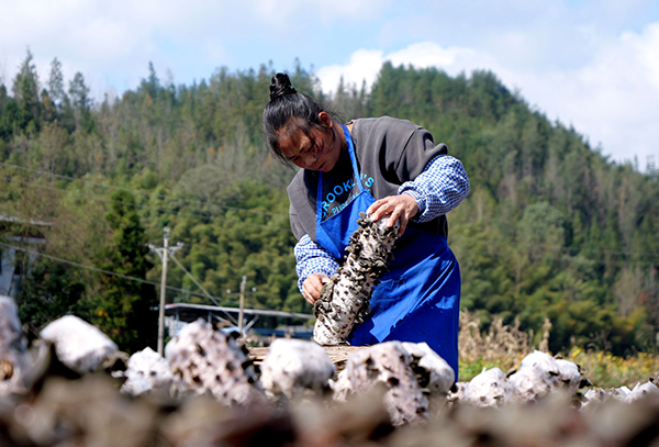 在黑木耳産業興旺的帶動下,豐收的紅利也惠及着石梁鄉的千家萬戶,真正實現了“小木耳帶動大就業”。“在家門口採木耳,一天能掙70塊,還能照顧老人孩子挺好的,而且來採木耳的姊妹都是附近的村民,大家在一起工作熱熱鬧鬧、開開心心的。”石梁勝利村村民黃明英一邊麻利地采收木耳一邊説。