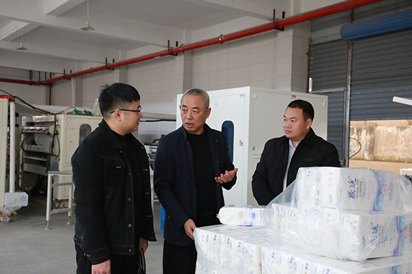 印江“專職&&服務小隊”走訪黔途紙業。(梅亞軍 攝)