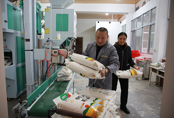 圖為印江縣纏溪鎮柳塘村駐村幹部幫助銷售大米。(梅亞軍 攝)