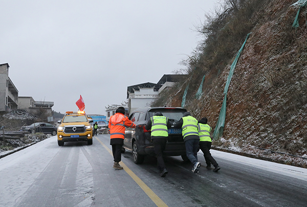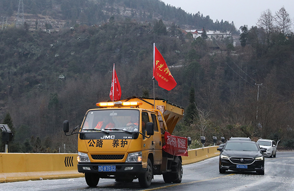 截至目前,貴州省松桃公路管理段累計出動應急搶險車輛14&次、黨員幹部職工36人次,布撒融雪劑12余噸,成功救助被困車輛20余輛,提供便民服務200餘人次,有效保障了轄區公路的安全暢通,讓“黨建紅”與“養護橙”在風雪中交相輝映,成為黔東大地最動人的風景。(梁博儒)