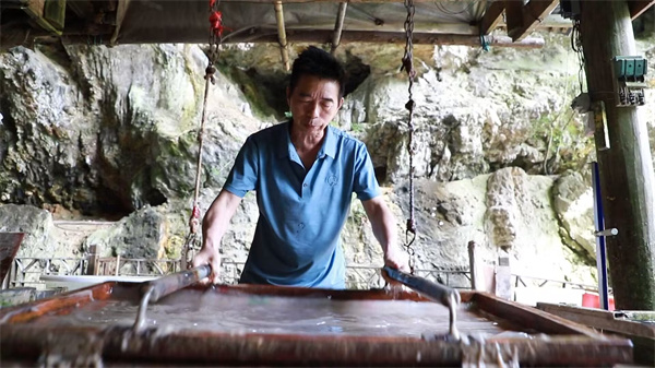 作為國家級傳承人,王興武不忘自己的使命,多年來在王興武用心培育下,培養出了許多優秀的技藝傳承人。羅有軍就是他最為得意的門生之一。師傅用心教導,加上自己的勤奮與努力,如今的他也能獨當一面,成為古法造紙技藝的優秀傳承者。丹寨縣南皋鄉石橋村村民羅有軍説:“從92年以來,我就跟着王興武老師造紙到現在大概30多年了,王老師所創作的每一款紙,包括迎春修復紙、貴紙也就是書畫紙我已經基本上全部掌握,我想把王老師所教我的技術進一步創新、發展,把我們所做的紙發揚光大。”