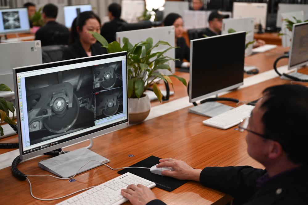在中國鐵路成都局集團有限公司貴陽南車輛段5T運用車間,鐵路貨車運行故障動態圖像監測系統對通過鐵軌線路的列車進行高速攝像,圖片信息傳回地面分析中心後,再由動態檢車員查找研判列車故障和安全隱患。5T檢車員們在春運期間每天要對約300列貨車進行檢測,查看約90萬張照片,默默守護春運安全。