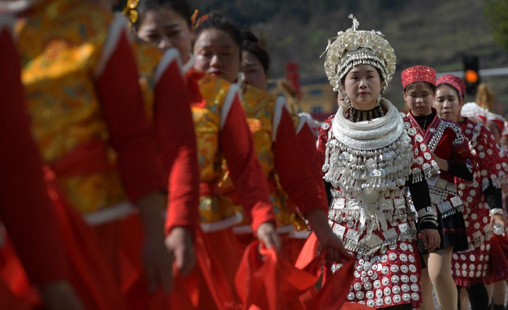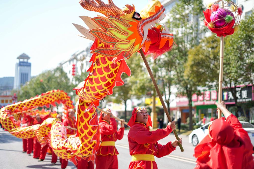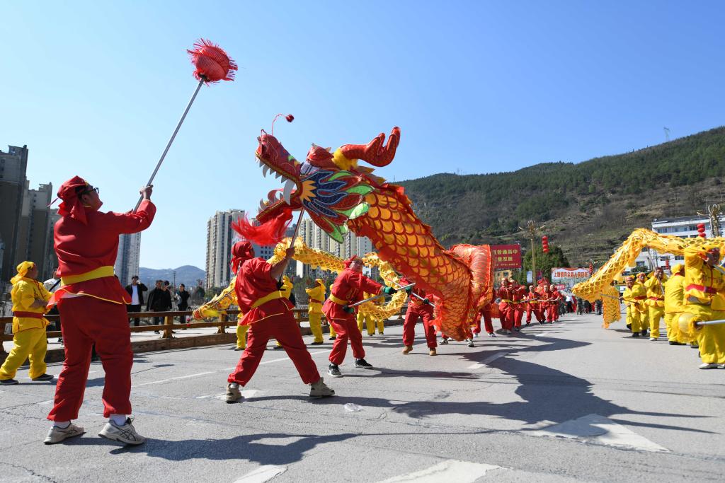2月18日,貴州省黔東南苗族侗族自治州黃平縣各鄉鎮群眾身着盛裝,歡聚一堂,舉行舞龍、花燈、舞獅、巡游等傳統民俗活動,祈盼新的一年風調雨順、五穀豐登。據悉,每年農曆正月初九,是黃平縣傳統龍燈會亮燈的日子,活動將持續到元宵節。