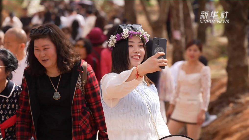 據了解,貴安櫻花園種植有超過70萬株櫻花樹,總佔地面積達2.4萬畝。早櫻潔白如雪、輕盈飄逸,晚櫻粉紅嬌艷、花團錦簇,在湖光山色間極具浪漫氛圍。今年,園內還打造了古風文化體驗、創意市集等多元業態,給游客帶來不一樣的感受。