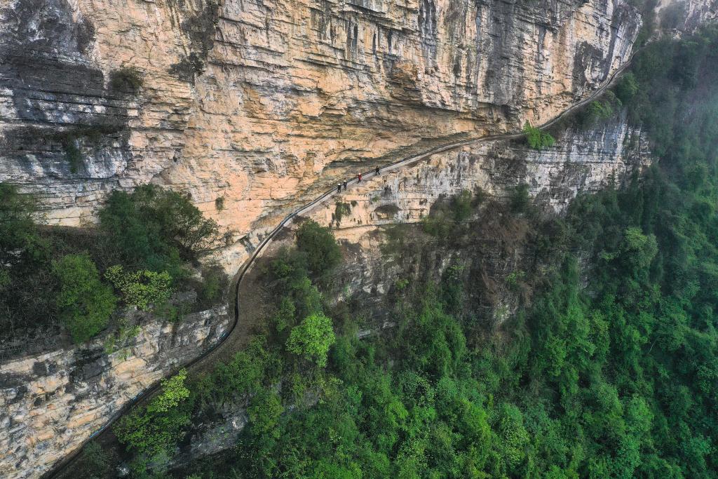20世紀60年代,村民在查看修建的絕壁天渠。 1958年春天