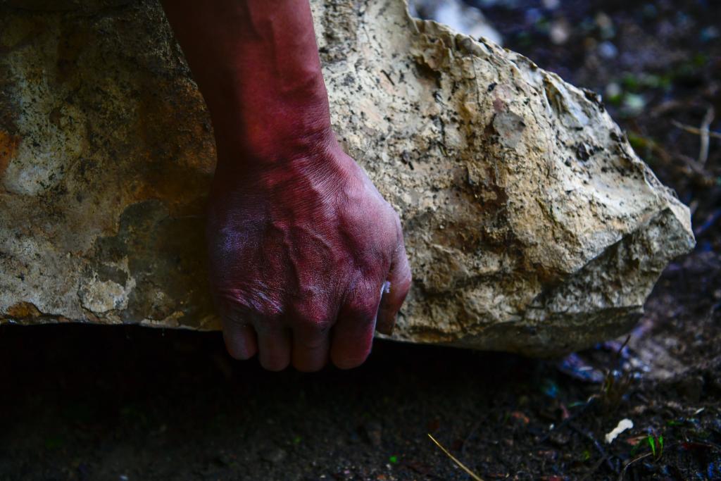 護渠隊員在畢節市七星關區生機鎮高流天渠清理滾落的山石(2024年4月24日攝)。 六十甲子