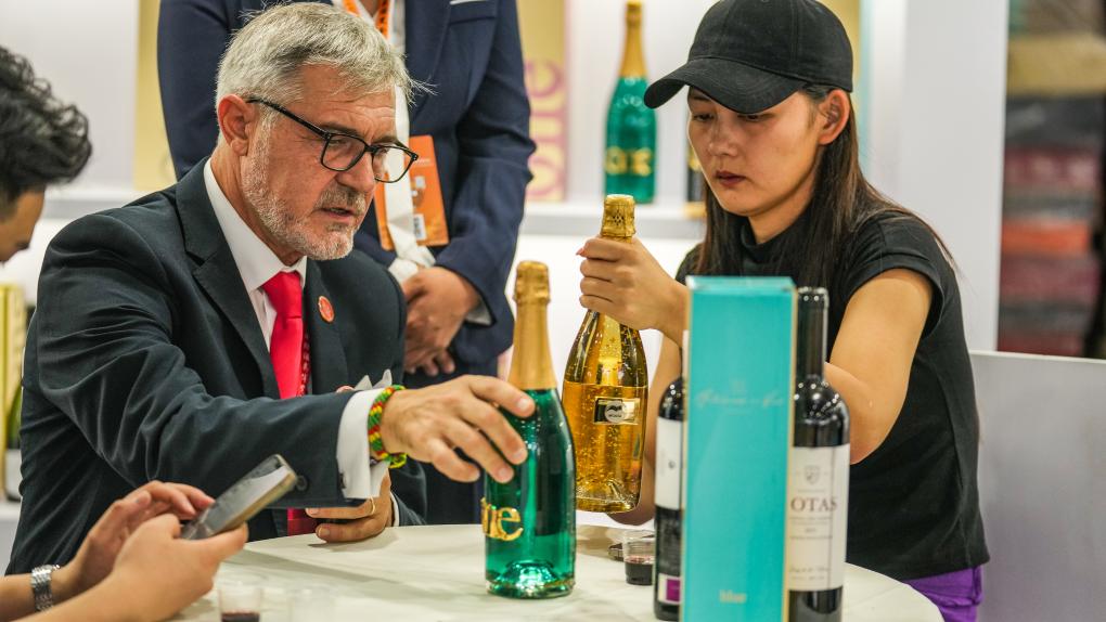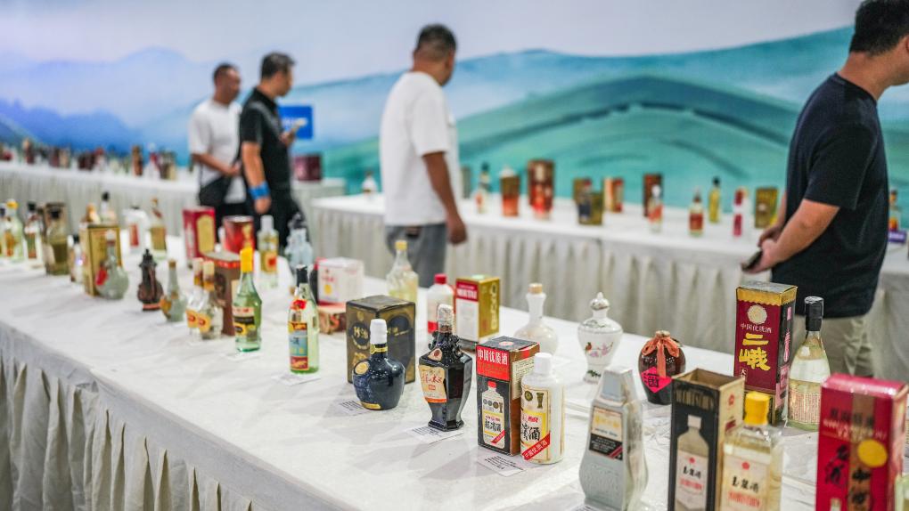 9月9日,觀眾在酒博會現場參觀陳列的展品。