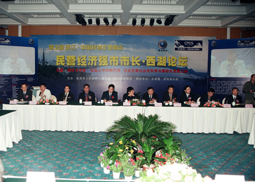 本次論壇是河北省人民政府主辦、石家莊市人民政府承辦的2007年石家莊國際投資貿易洽談會的活動之一,是2007年11月12日在杭州召開的第五屆浙江•中國民營企業峰會的北方分會場。論壇將擬邀請有關省、市領導、中科院民營經濟專家學者、工商業聯合會會長、工商局局長、中小企業局局長、浙江省著名民營企業家代表、華北、東北、西北等地區有影響力的民營企業家、全國30個省、直轄市的浙江企業聯合會(商會)會長、在冀的浙江籍民營企業家等1000餘人參加。 [詳細內容]