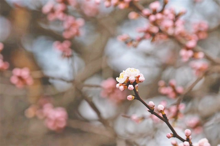 連翹之後,4月下旬到4月末,賞榆葉梅可以到香清園、中國亭園和中山路、長江路、三合路、文政街等處。香清園和中國亭園的榆葉梅分別達到2000余株。