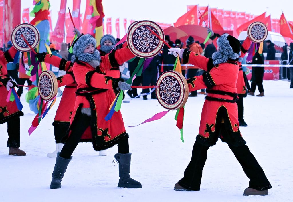 1月1日,演員在現場表演赫哲族歌舞。新華社記者王春雨攝