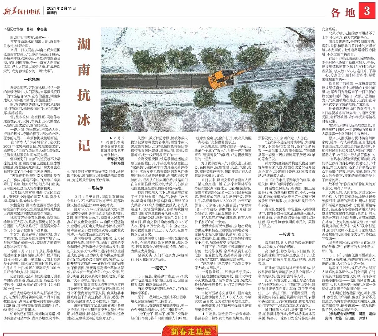 城鄉遭遇冰凍,亦有熱血化凍。這樣的故事,發生在湖南的大街小巷、山野田間。
