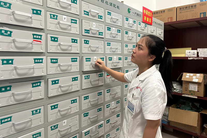 保亭黎族苗族自治縣三道鎮衞生院中醫科醫師符美春在查看藥材。新華社記者 陳凱姿 攝