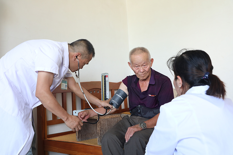 8月6日,海南省屯昌縣坡心鎮的村醫上門為村民篩查慢性病。新華社記者 趙玉和 攝