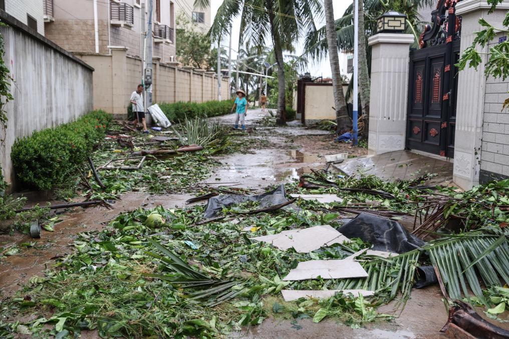 9月7日,在海南文昌市鋪前鎮,一些海邊養殖場的店主在焦急地等待道路疏通。新華社記者 張麗蕓 攝