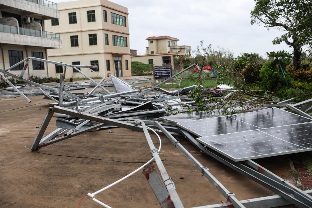 9月6日,這是在海南文昌市鋪前鎮被颱風吹掉門面的倉庫。新華社記者 張麗蕓 攝