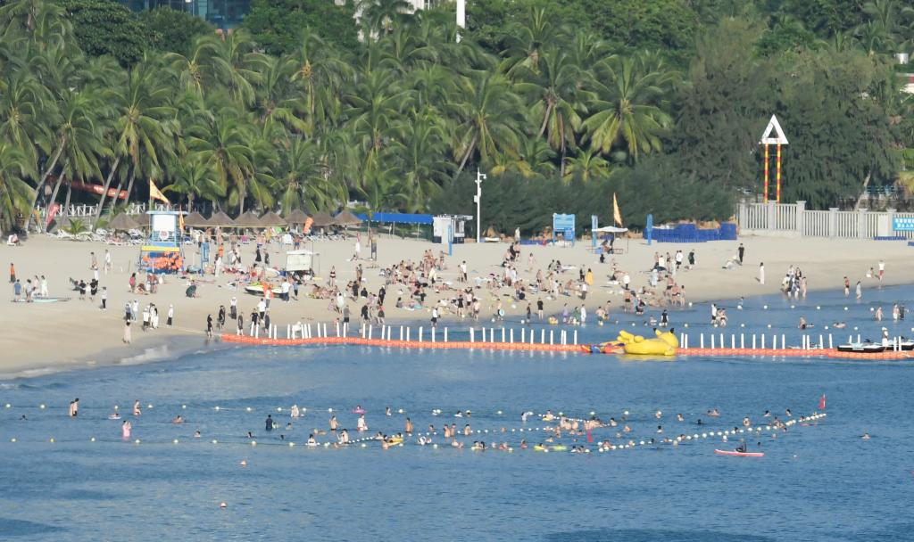 10月14日,游客在三亞市大東海旅游區游玩。