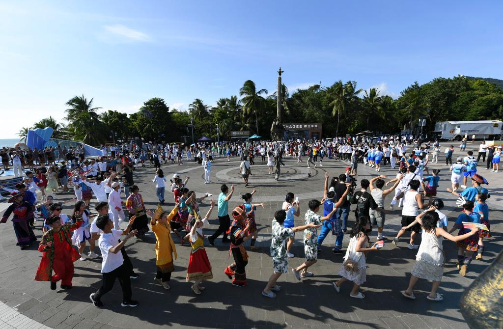 新華社三亞11月26日電(記者張逸飛、譚暢)在三亞的碧海藍天下,一場別開生面的民族大聯歡活動將這裡裝點得格外絢爛多彩。作為第十二屆全國少數民族傳統體育運動會(以下簡稱“運動會”)的重要環節,民族大聯歡不僅彰顯了各民族文化的獨特風采,更在輕鬆愉快的氛圍中促進了各民族之間的深入交流與融合。