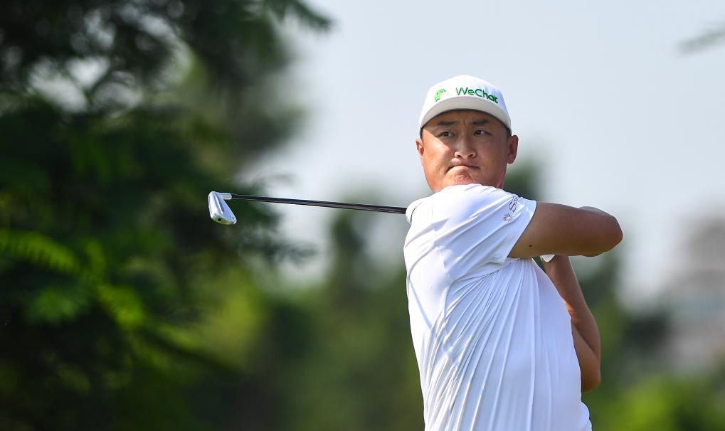 4月24日,中國選手李昊桐在比賽中。首個比賽日結束後,他以66桿、低於標準桿6桿的成績排名並列第一。新華社記者 楊冠宇 攝