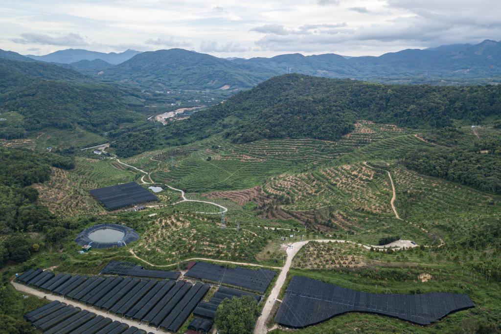 5月24日在海南保亭拍攝的保亭優旗潘坡榴蓮生態産業園,該園目前種有約1000畝榴蓮(無人機照片)。