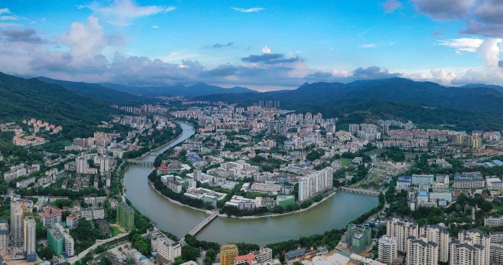 這是2025年6月6日拍攝的五指山市區景色(無人機照片)。新華社記者 郭程 攝