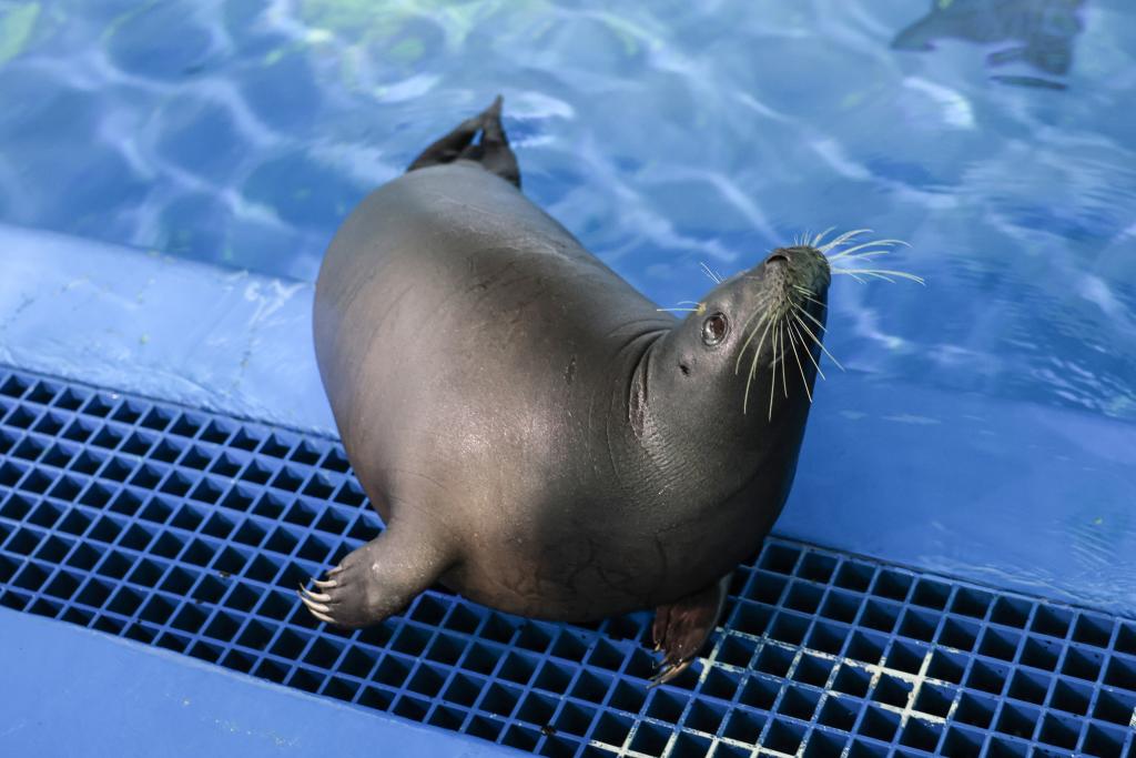 9月8日,海豹“阿儂”在海南陵水藍海保育救護中心。新華社記者 張麗蕓 攝