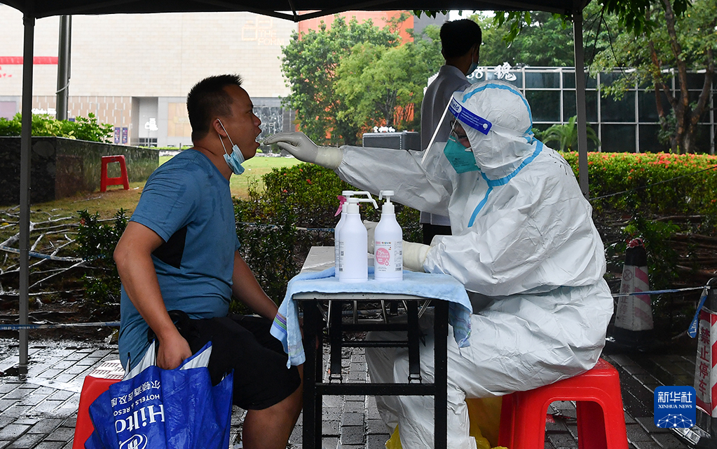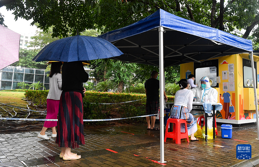 8月10日,居民在海口市龍華區百方廣場核酸採樣點接受核酸採樣。新華社記者 楊冠宇 攝