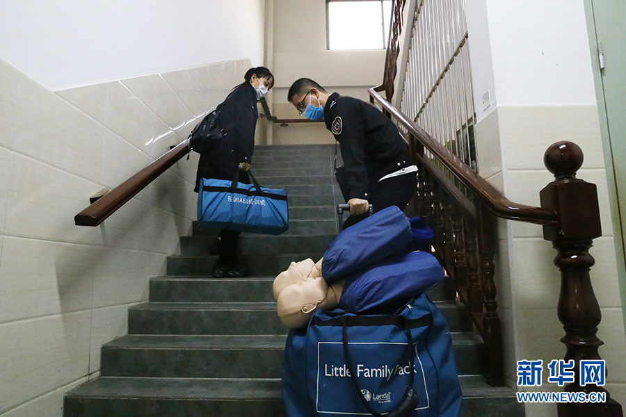 12月10日,盧歡同事蔡婷(右)在課堂上協助指導學員心肺復蘇急救訓練。新華網 王雯君 攝