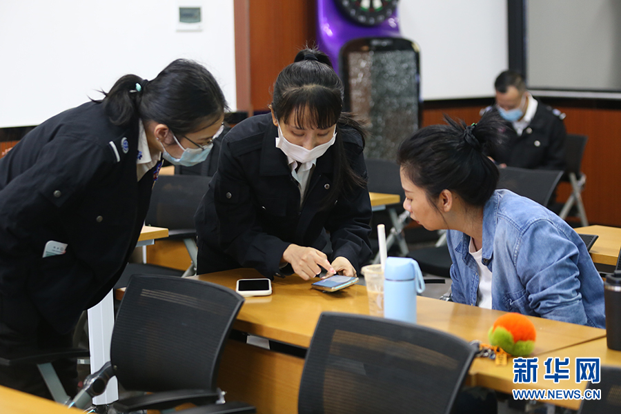 12月10日,課間休息時,盧歡和學員進行溝通交流。新華網 王雯君 攝