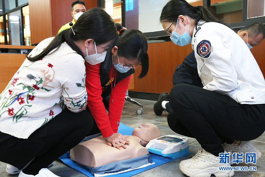 12月10日,學員在課堂上進行心肺復蘇急救訓練。新華網 王雯君 攝
