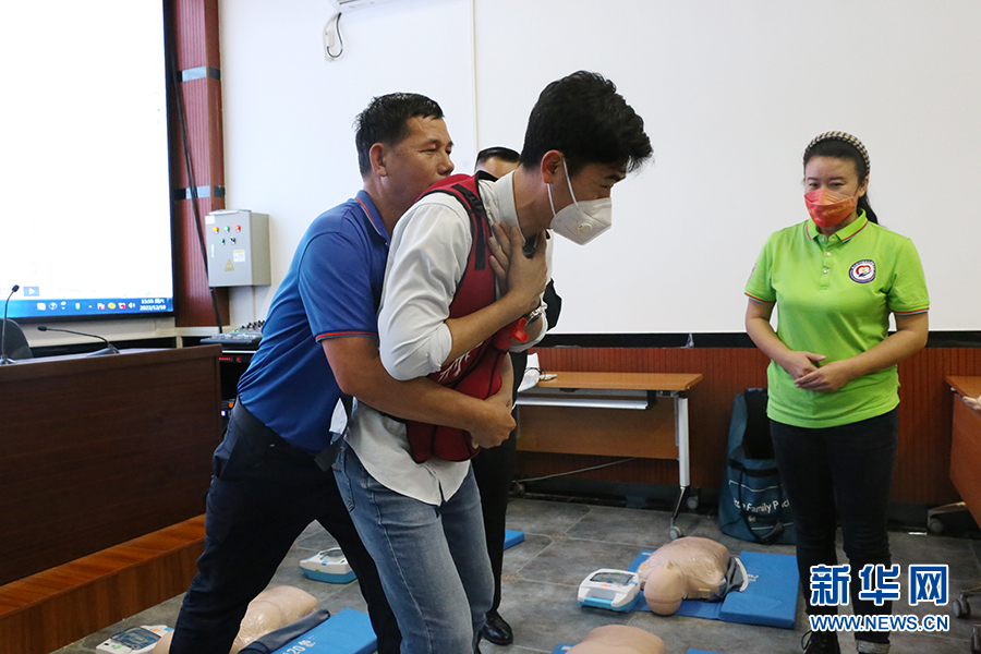 12月10日,學員在課堂上進行氣道梗阻急救訓練。新華網 王雯君 攝