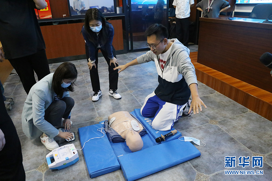 12月10日,學員自由組隊在課堂上進行心肺復蘇急救訓練。新華網 王雯君 攝