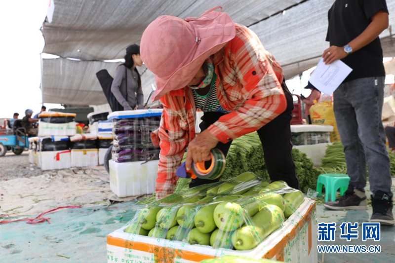 2月15日,工人在三亞市崖州區果蔬綜合批發市場內對蒲瓜進行打包裝箱。新華網發(陳慧 攝)