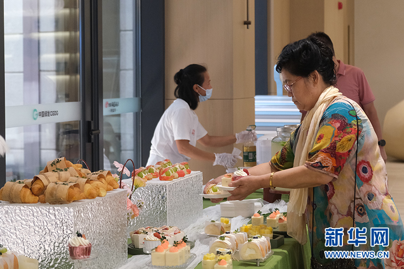 嘉賓在美好生活市集體驗區美食攤位選取美食。新華網發