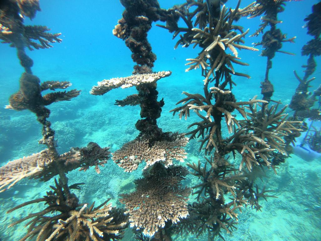 為了恢復附近海域內的生態環境,蜈支洲島於2016年開始珊瑚的大面積修復。截至目前,王豐國帶領他的團隊已經種植了51000多株珊瑚斷枝,面積超53000平方米。