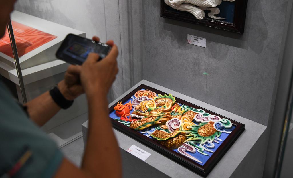 9月30日,觀眾在海南省非物質文化遺産展示中心內拍攝展品。