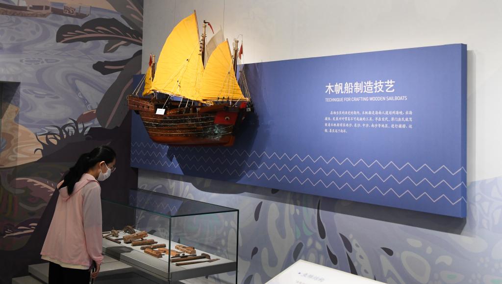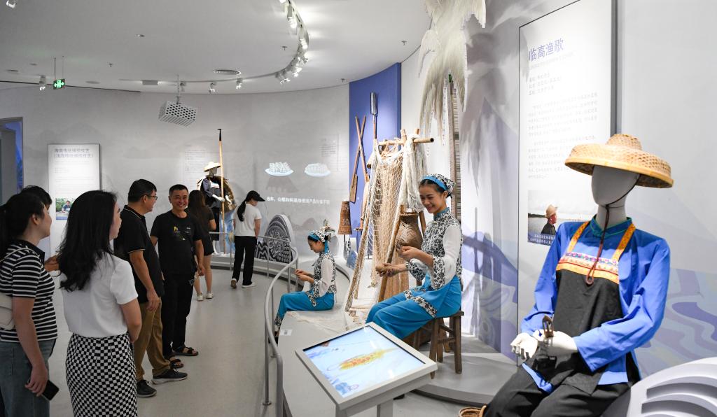 9月30日,觀眾在海南省非物質文化遺産展示中心內參觀。