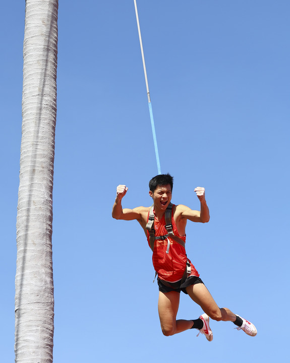 選手在攀椰競速比賽中。新華社記者 楊植森 攝