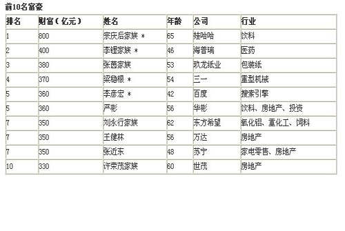 在新上榜的四位富豪中,娃哈哈集團董事長宗慶後以800億元高居榜首,財富總額比排名第二位的李鋰家族高出整整一倍。