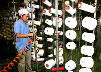 圖為上海崇明島上的飛逸紡織廠員工正在生産線上忙碌。記者