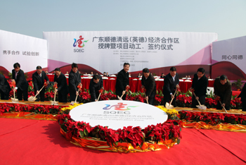 12月24日,廣東順德清遠(英德)經濟合作區授牌暨項目動工簽約儀式在清遠英德市隆重舉行。中共中央政治局委員、廣東省委書記汪洋,省人大常委會主任歐廣源,省委副書記、代省長朱小丹等出席儀式。汪洋、朱小丹分別向清遠市和順德區負責同志頒授廣東順德清遠(英德)經濟合作區黨工委牌匾和廣東順德清遠(英德)經濟合作區管委會牌匾。