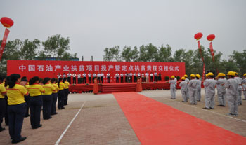 “中石油目前定點扶貧與對口支援涉及全國8個省區14個縣區。”中石油定點扶貧與對口支援領導小組副組長、總經理助理李潤生在項目交接儀式上説,其中從2007年開始定點扶貧河南兩縣——&前縣和范縣。幾年來,中石油把改善群眾基本生産生活條件作為扶貧工作着力點,累計投入3000萬元,援建了中醫院、技能培訓中心、中心小學、通村道路、飲水工程等10個民生工程。