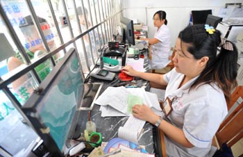 近日,廣西壯族自治區深化醫藥衞生體制改革2012年主要工作安排提出,廣西今年確定25項醫藥衞生體制改革重點工作。其中,20類大病納入保障和救助範圍,分別是推進尿毒症、兒童白血病等8類大病保障,將肺癌等12類大病納入保障和救助試點範圍。圖為在廣西桂林市人民醫院住院結算中心,工作人員在給病人計算醫療費用。記者 陸波岸/攝 |